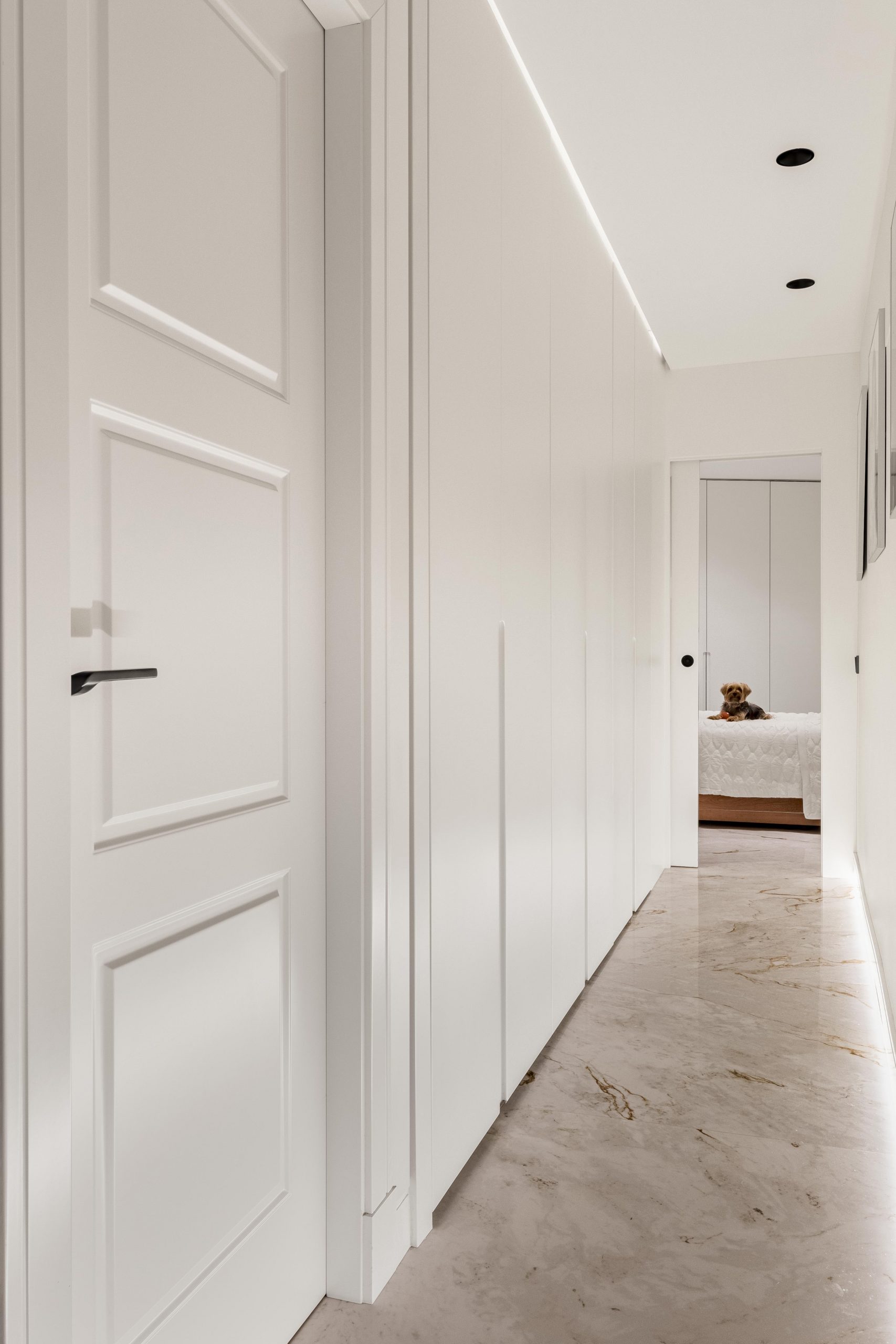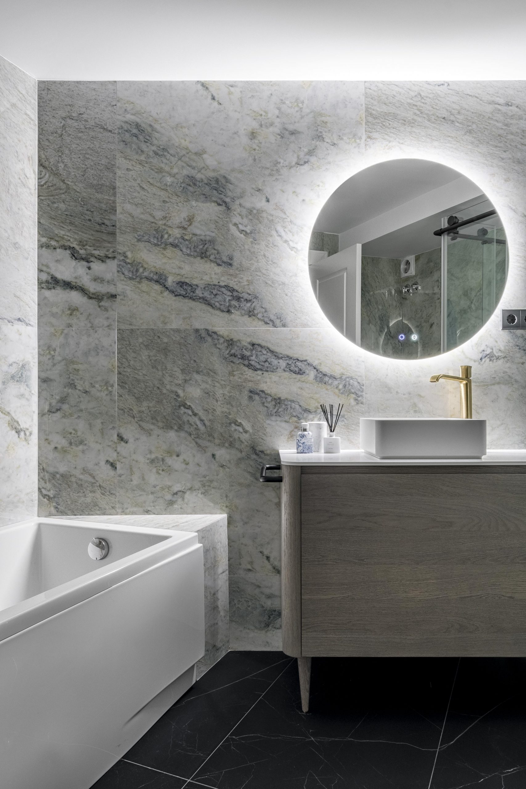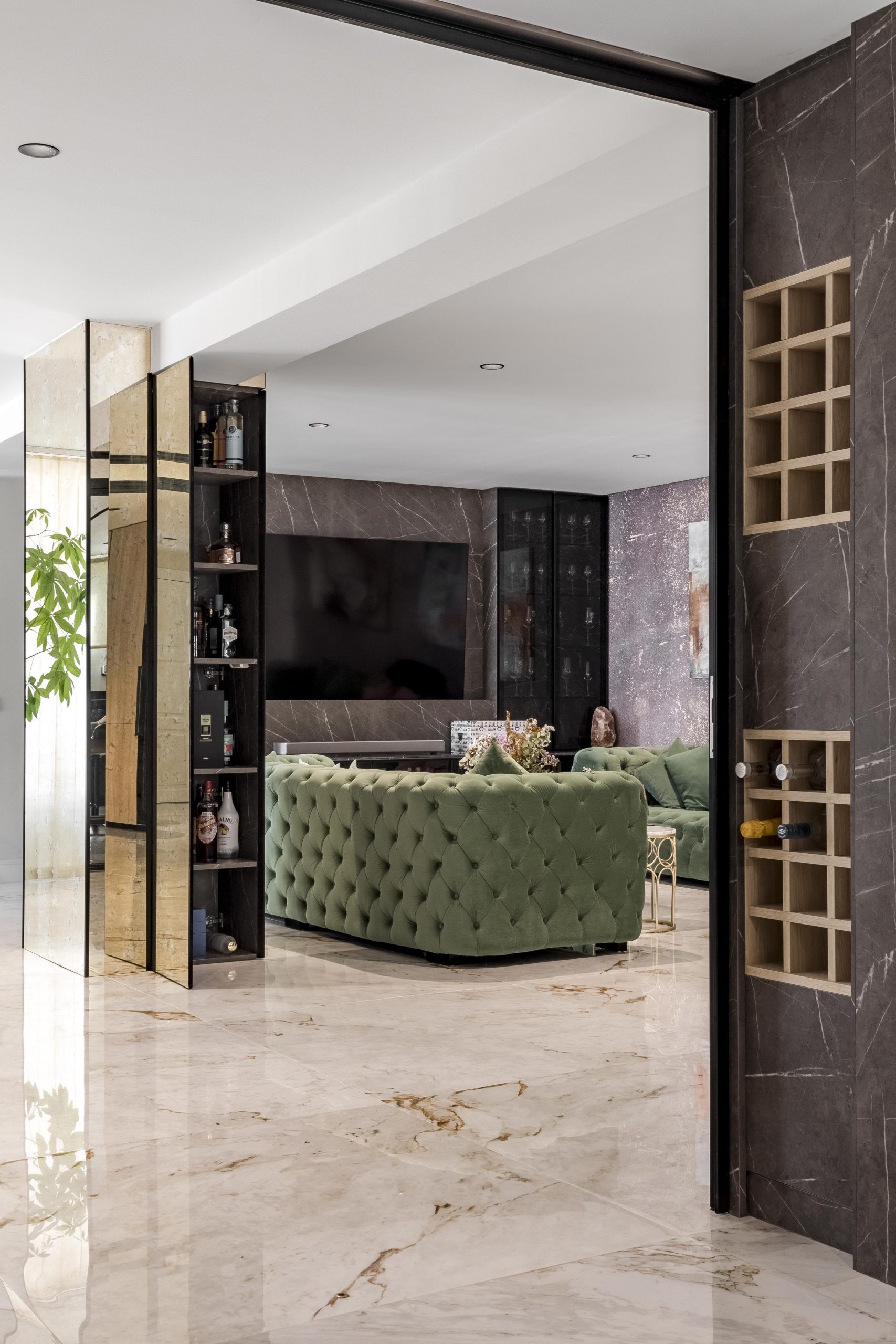 SST es una reforma residencial que parte de la revisión de los convencionalismos que organizan la vivienda burguesa tradicional para plantear una situación alternativa. La division espacial tradicional entre el circuito de servicio, los espacios de recepción social y el ámbito familiar privado, es superada por una estrategia distinta: una banda de servicio que divide las esferas de lo íntimo y lo compartido y que sirve a una serie de habitaciones de similar superficie y calidad, despojadas de criterios familiares jerárquicos. Esta banda se evidencia a través de un pavimento de mármol negro pulido que contrasta con la luminosidad que caracteriza el resto de la vivienda. Los espacios comunitarios, a su vez, se articulan en torno a elementos totémicos igualmente construidos en mármol negro, como la gran isla que preside la cocina, dominando y organizan el espacio con su imponente presencia.